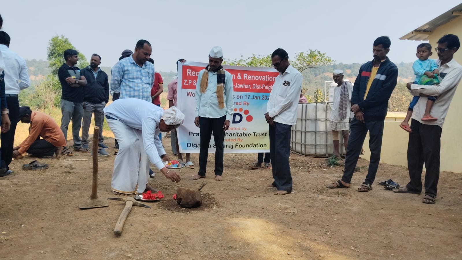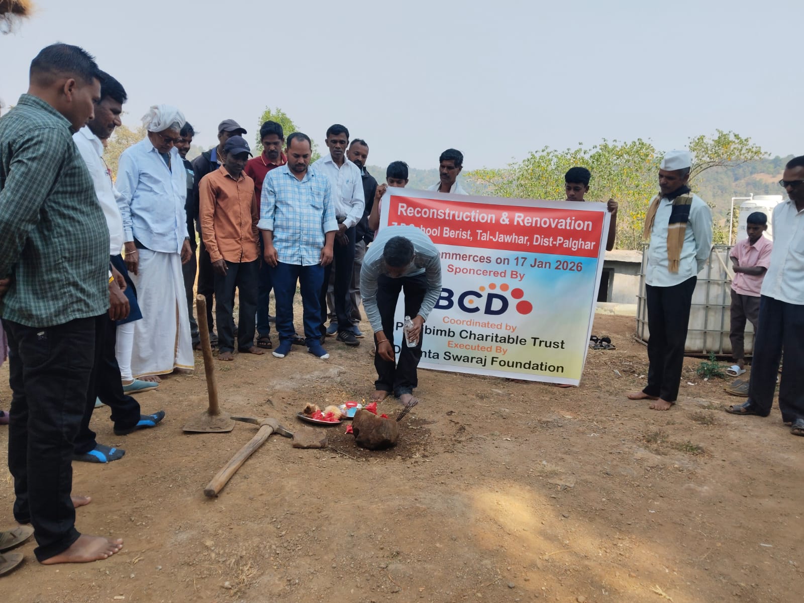 Mr. Naresh Padia, trustee, performs Bhoomi Pujan on behalf of the Pratibimb Charitable Trust.