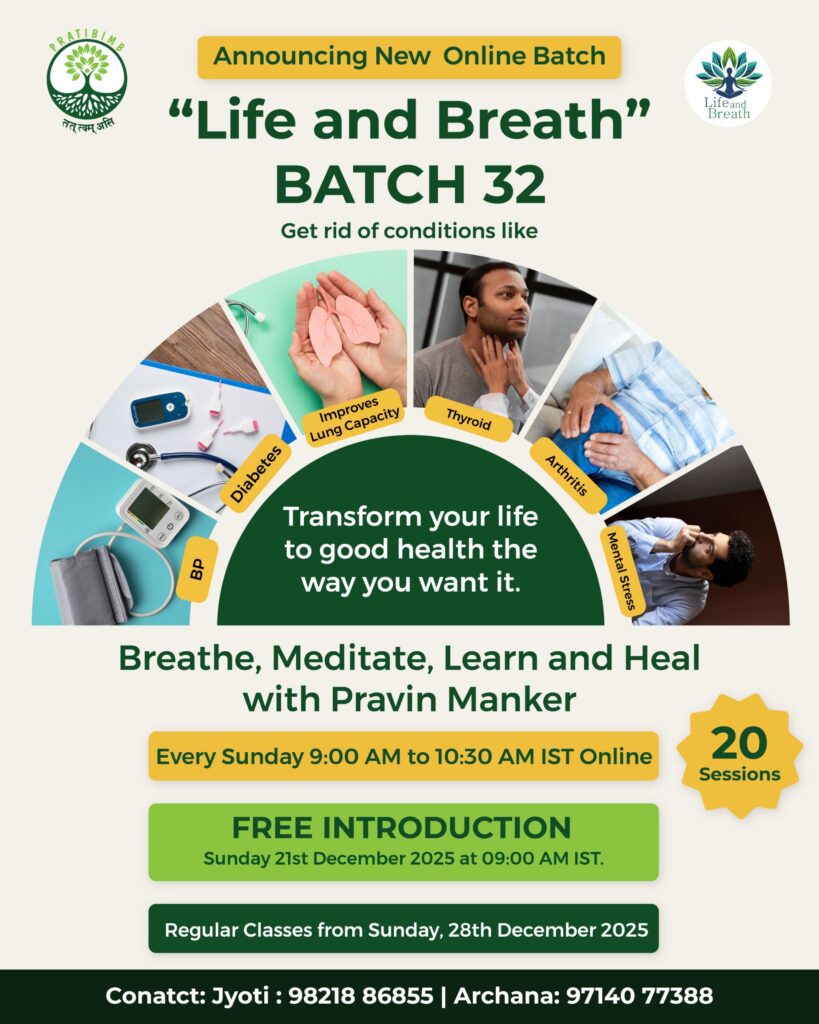 Participating in the Course in Life & Breath by Pratibimb Charitable Trust has been life-changing — improving my breathing, reducing stress, and helping manage diabetes and cholesterol. The teachers’ free daily sessions are refreshing and grounding, and I’m truly grateful for this program that’s accessible to all.